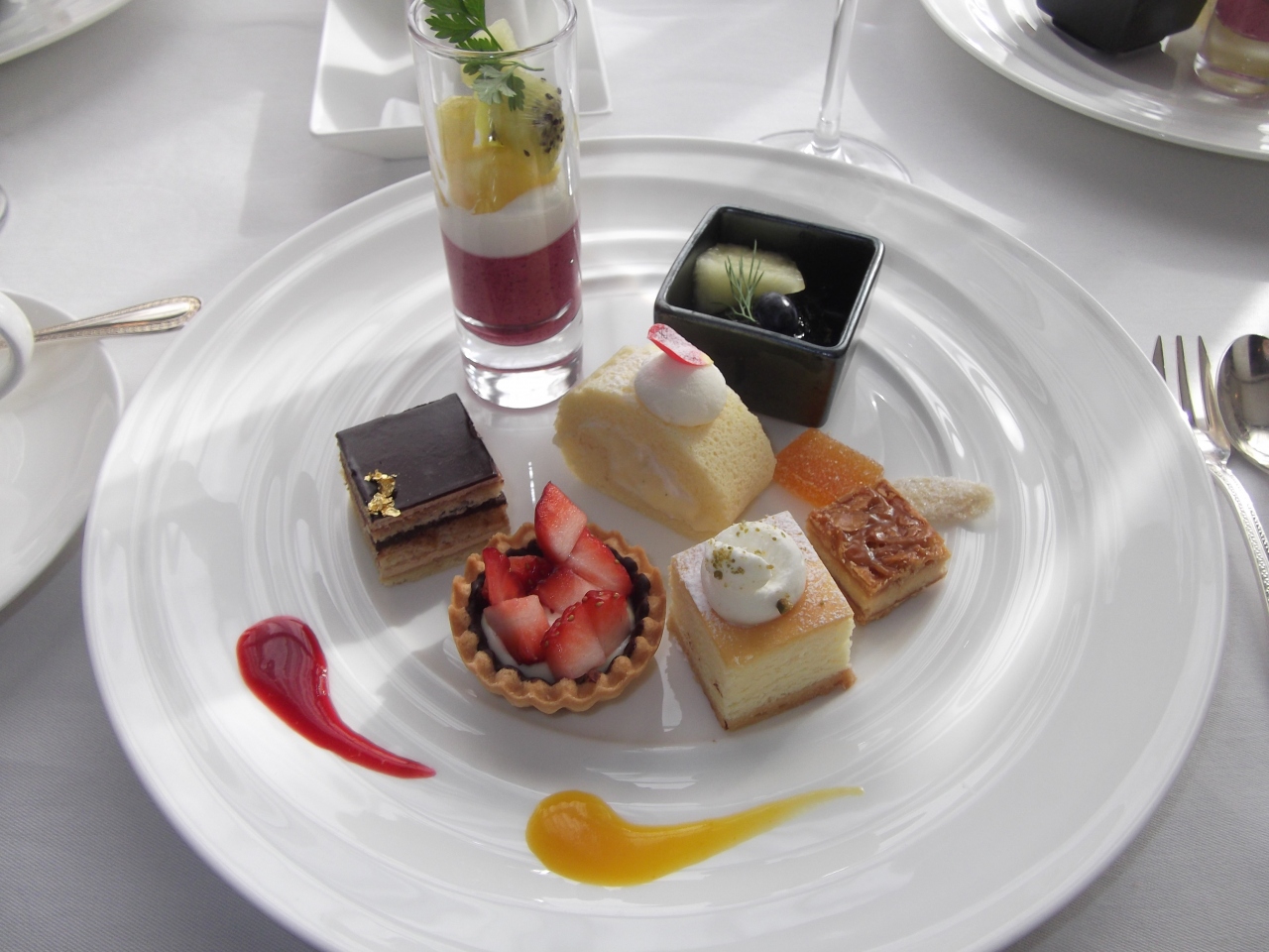 ワゴンにのせられた可愛いプチデザートはどれも美味しそうで