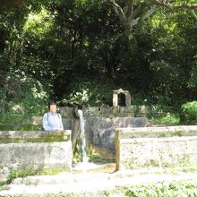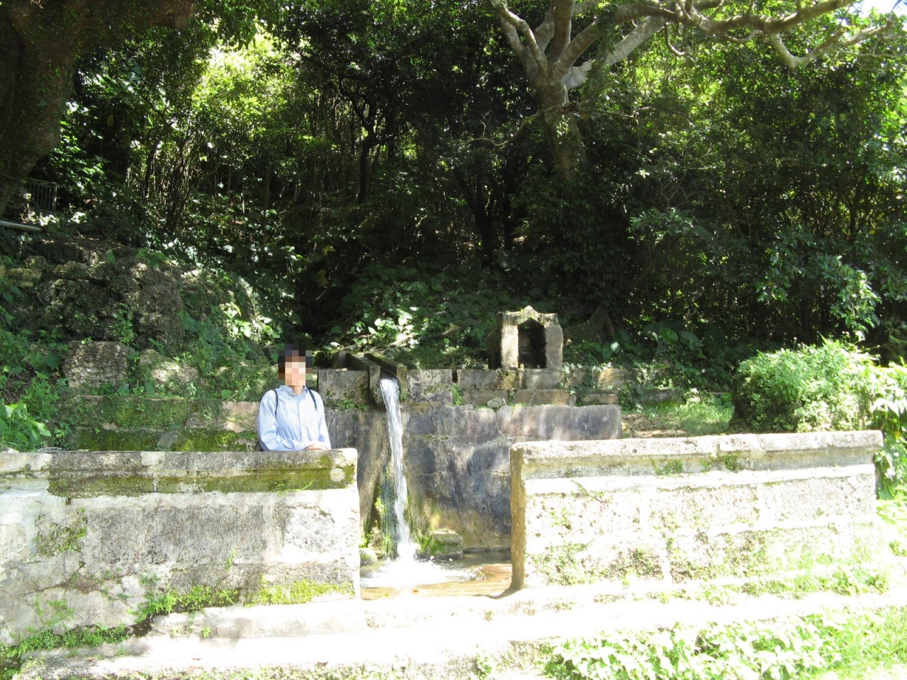 「垣花樋川」は、沖縄南部の玉城村の、丘陵の斜面にある全国名水百選に選ばれた湧き水の水場(樋川)です。国道331号線の垣花集落の少し入ったところから、足元の悪い急な坂道を下っていくと小さな水田がある、海に面して開けた場所に出ます。そこら一体は水が豊富な様で、石組みで出来た泉から、湧き水が流れ出し、幾つかに分かれて下の池に注いでいました。