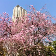 お昼どきにはベンチでお弁当を広げているサラリーマンやOLも多く、近隣会社員の憩いの場になっています。また、夕方には、犬の飼い主がたくさん集まってワンワン公園状態になっています。