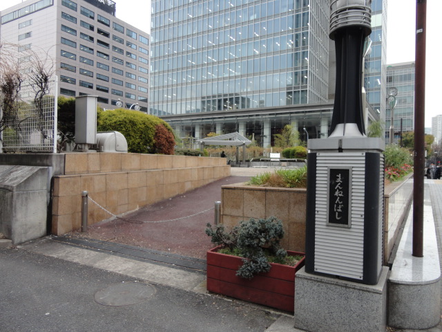 晴海通りにある首都高をまたぐ橋です。この橋の下はもともと築地川が流れていましたが、昭和39年に埋め立てられて高速道路となりました。銀座からこの橋を渡って晴海通り沿いに歩いていくと築地市場があります。橋の両側が公園になっています。