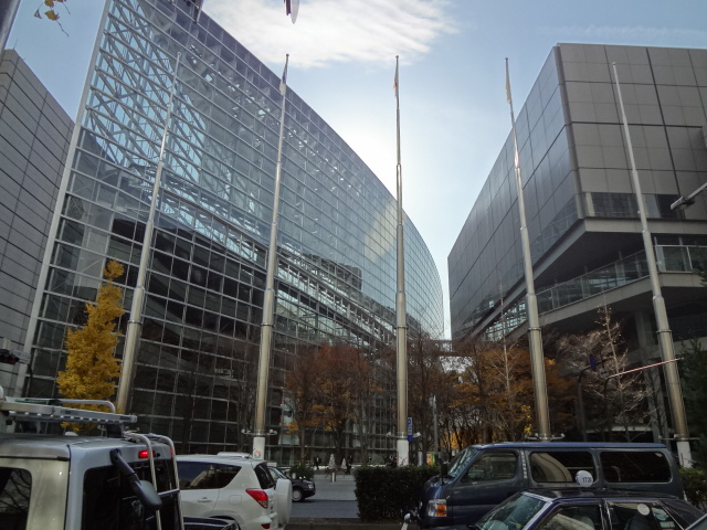 都庁舎が新宿に移転し、その跡地に建てられ1997年にオープンしました。一番目立つ建物であるガラス棟は巨大な舟形のアトリウム空間です。ロビーに入ると大きなガラスの船に入っている感じです。またあちこちに世界から集められたオブジェもあり、暖かい日にはぶらっと見て回るのも楽しいです。