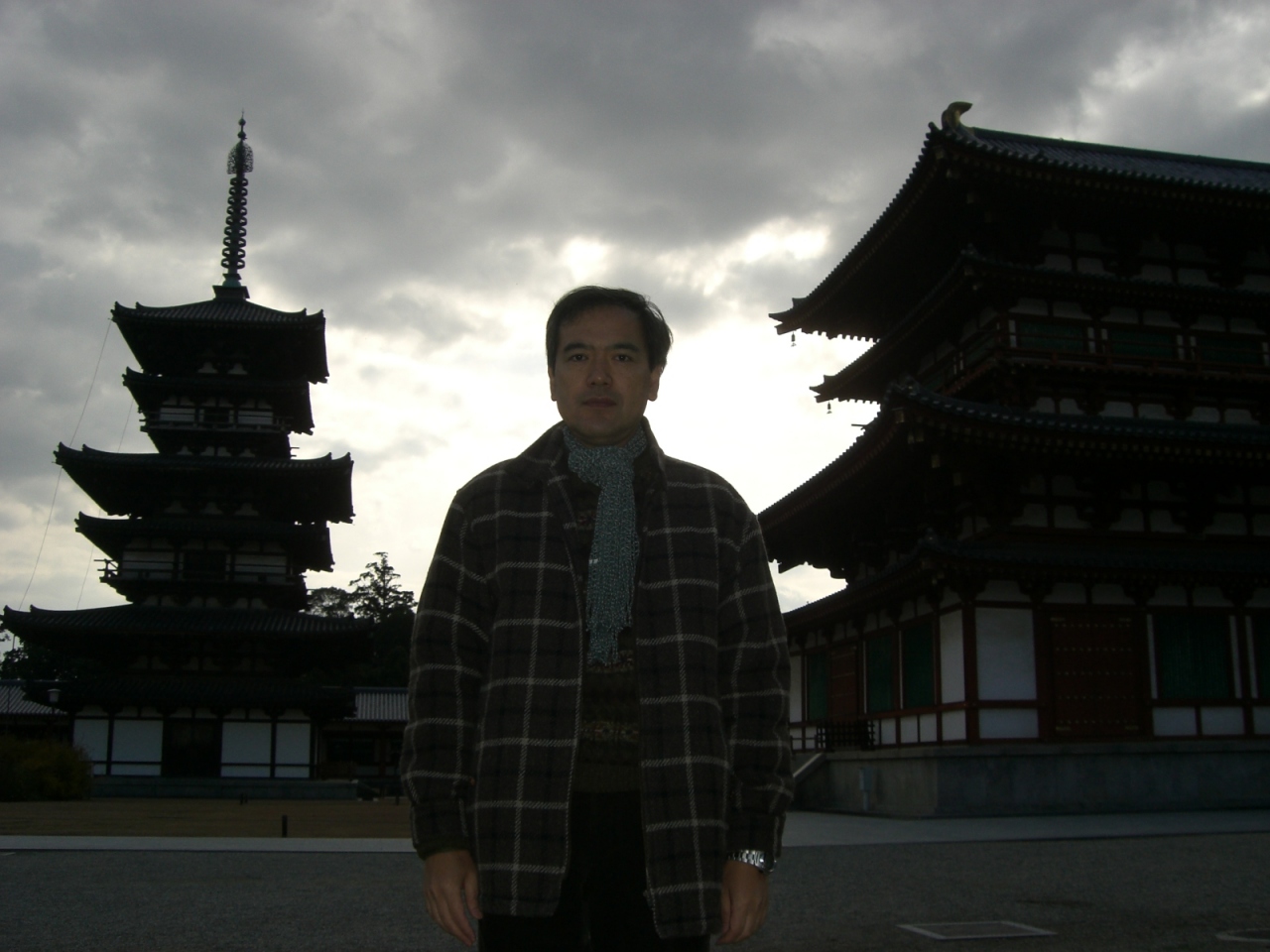 薬師寺の西の池のほとりから伽藍を眺めると、周囲の景色の中に溶け込み、タイムスリップしたような錯覚にとらわれます。