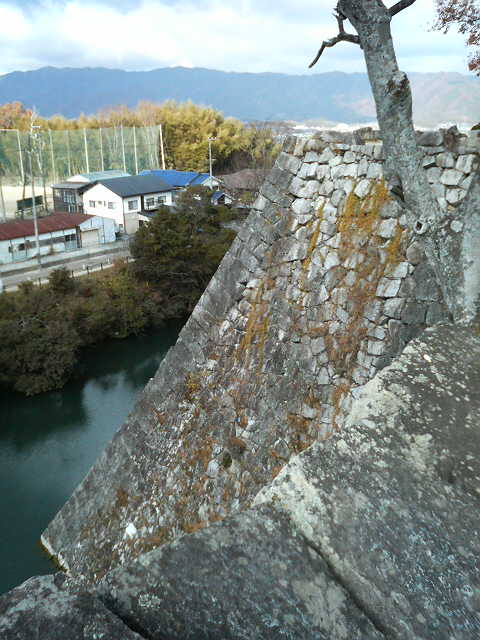 本丸のある広場までは結構な急坂を登りますが、登りきった後には高い石垣の上から周辺を一望するいい眺めが待っています。(日本有数の高石垣らしいです)