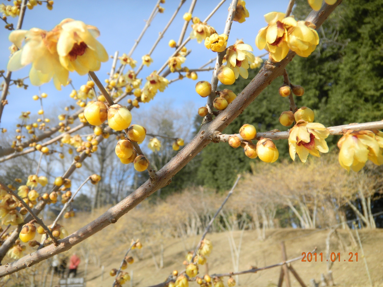 臘梅は満開に近い状態でしたが、山頂から臘梅を通して眼下に秩父の街並みが広がり、目を転じれば武甲山等もよく見え、臘梅と周囲の景色の調和に大満足しました。