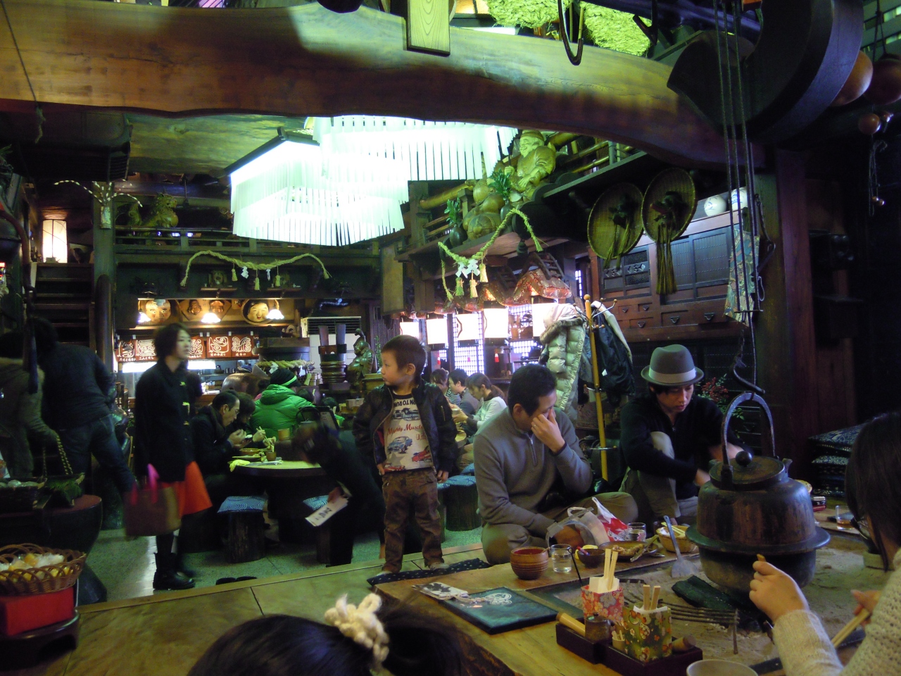山口県岩国でかなり有名なスポットがここ「いろり山賊」ですね。今回は正月に訪れました周辺はかなりの賑わいを見せていました(かなり派手ですね)。ここでは名物の大きなむすびの「山賊むすび」、豪快に食らう「山賊焼」、「山賊うどん」などを注文しました。ここではいくつもの食事処もあり、このようなスポットは関東にはないような気がします。岩国に行った際には是非、お薦めのスポットですね。