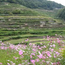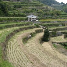 「中山千枚田」は小豆島の西の玄関口の土庄港から車で約10分、県道252号線の中山にあります。ここは、農林水産省の“日本の棚田百選”に指定されており、標高150~250mの急峻な山腹に8.8ヘクタール、733枚の大小さまざまな棚田が波形模様に広がっています。訪れたときは、稲刈りも終わっておりそれほど綺麗な棚田を見ることが出来ませんでしたが、先人の努力と汗の結晶を感じることが出来ました。