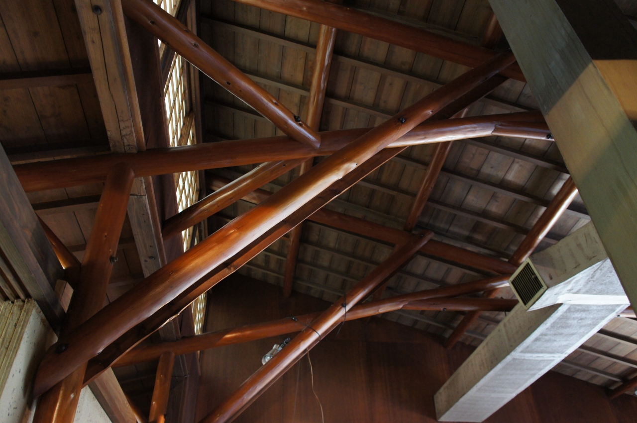 なお、隣りに、井上房一郎邸があって、こちらも見学。アントニン・レーモンドの設計というのですが、数寄屋作りの雰囲気もあって、日本人の感性には響くかもしれません。一方では、プレハブと同様に柱がほとんどないので、事務所としての使い勝手もよかったものと思われました。