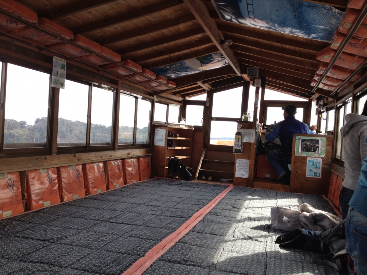 四万十川下流にあるアカメ館で屋形船を申し込みました。乗船料は一人2000円。JAF会員は1800円です。人数が多ければチャーターするのも良いと思いますが、ちょうど今はオフシーズンなので私たちだけで観光できました。