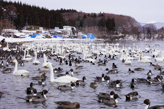 特に、志田浜では会津のシンボル磐梯山を背景に白鳥を撮ることの出来る、絶好の撮影スポットとなっています。