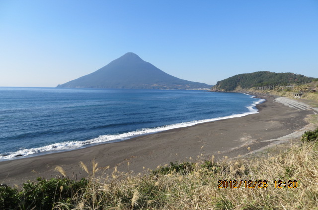 小さな灯台がある。灯台に行く途中の右側に開聞岳の絶景があり、埼玉から来ていた一見して写真家がバシャバシャと何枚も写真を取っていました。駐車場がなく、坂道になる前にある小さなみやげ物屋のおじさんに声を掛けられて、その店の駐車場に停車させてもらいました。後で何かみやげ物を購入してくれとせがまれた。観光シーズンではなかったため、坂の下にある灯台近くにある空き地にも駐車可能でした。