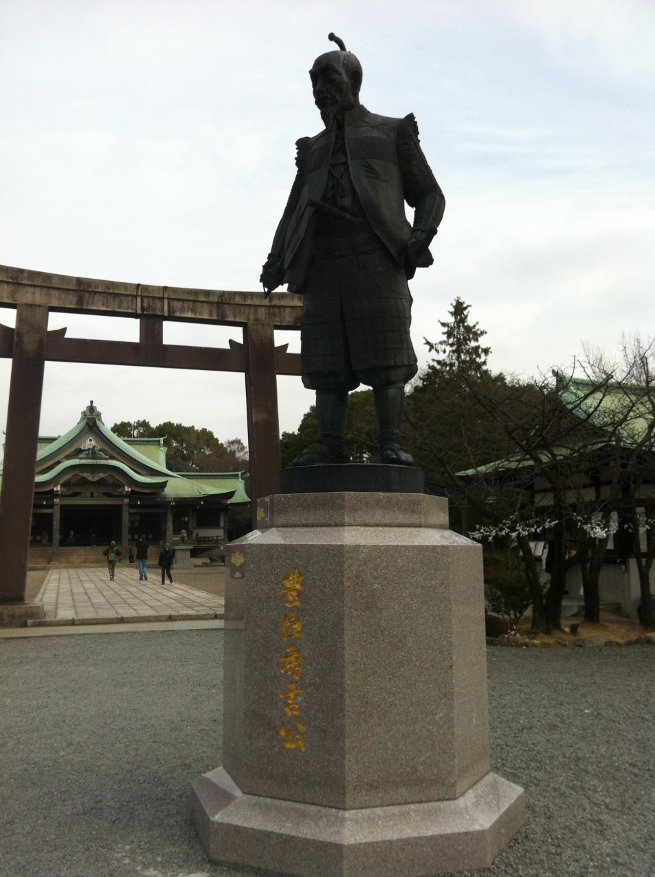 鳥居の外には豊臣秀吉の大きな銅像があり、自分を含め観光客が盛んにシャッターを切っていました。