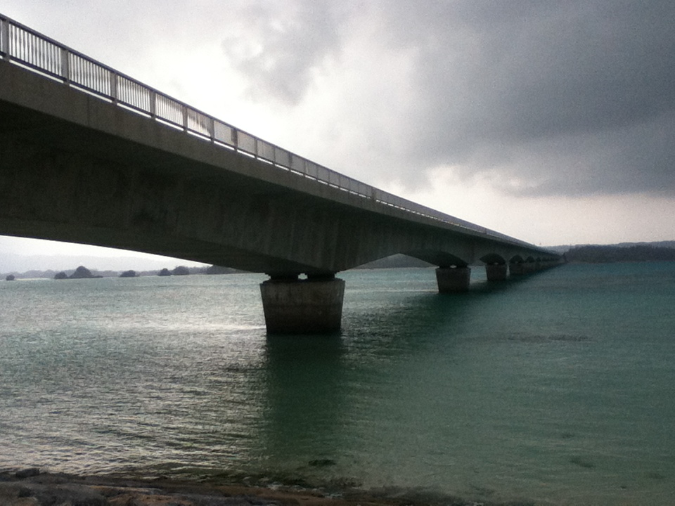 橋の上からみた、エメラルドグリーンの海がとてもきれいでした。