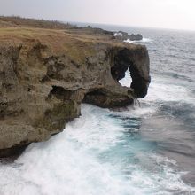 隆起したサンゴの断崖は、象の鼻のような形の岩です。
