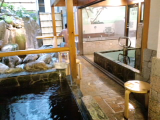 小さな池のある露天風呂は源泉追加投入量が多いようで、特に源泉水風呂からは常にそこそこの量が溢れ出していた。