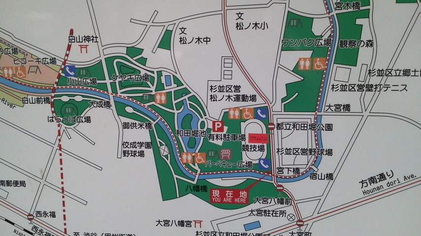 都内にしてはアクセスが悪く、駐車場も少ないスポーツ主体の公園です。