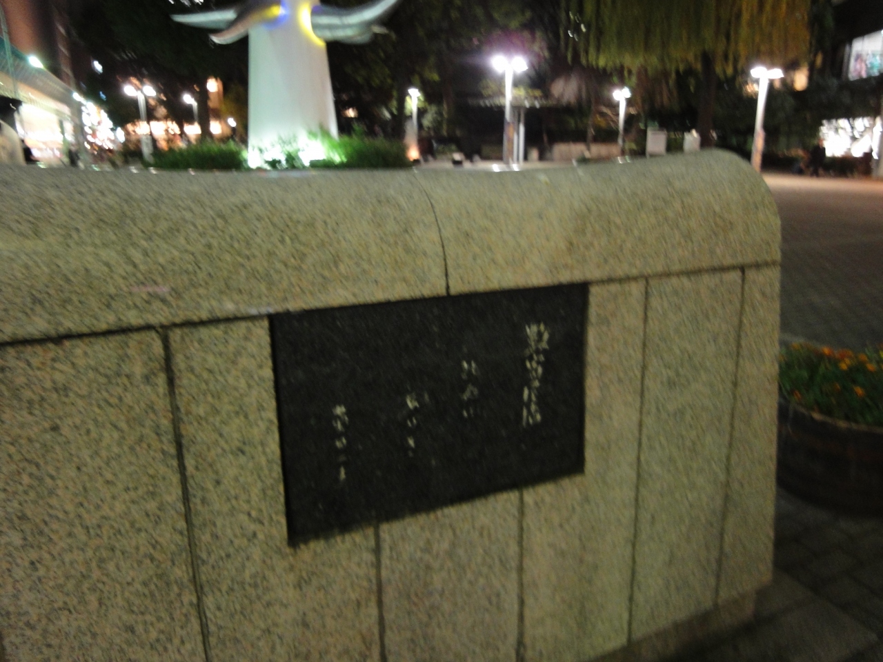 数寄屋橋公園には、岡本太郎さんのモニュメントがありますが、こちらの数寄屋橋の碑も、その手前にどっしりと構えています。地味で目立たないかんじですが、確実に何かの碑だなと分かるかんじですよ。彫ってある言葉がシンプルで、字体も素敵だなと思います。