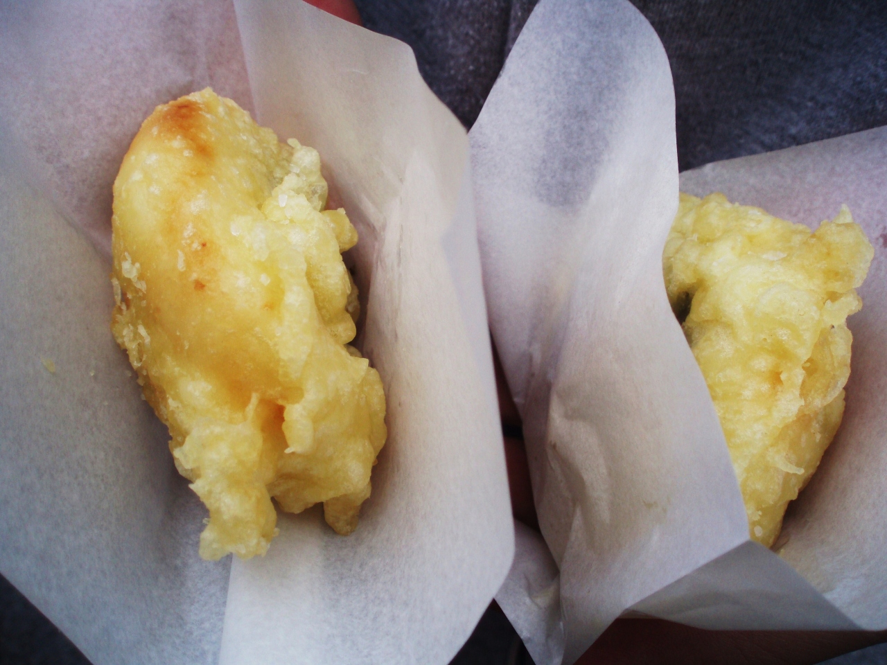 かりっと揚げたてで、少ししょっぱく味付けされた湯葉とほかほかの甘い