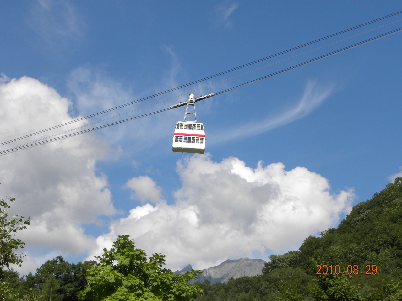 新穂高ロープウェイは二つのロープウェイに分かれており、第一ロープウェイの鍋平高原から第二ロープウェイのしらかば平まで200m程度歩いて乗り換えます。