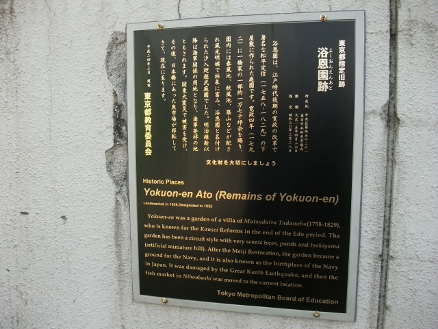東京都の指定旧跡らしいですが、中央区の施設同様に簡素なレリーフです。