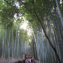 天龍寺の庭の山側一部に竹林が見えていました。天竜寺の出口を出て左すぐの場所に竹林の道が続いていました。日射しが上からふりそそいで…コマーシャルで見た映像を期待していたのですが、夕方、日が暮れる前だったせいか暗くて少し残念でした。もう少し早く行けばよかった。