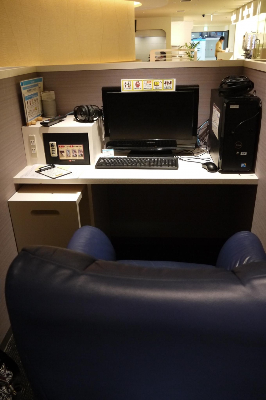 個人ブースのパソコンはTVも見られます。