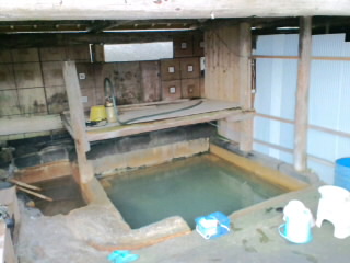 浴槽は二つあり真ん中で仕切られてはいるが、それぞれの浴槽の湯温が違うため実質的には混浴らしい。