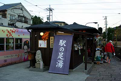 この新しい嵐山温泉を日帰り入浴のみで楽しめる施設は現在なく、しいていえば嵐電嵐山駅のホームにある足湯ぐらいであろう。