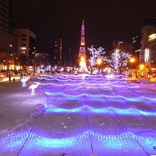クリスマルイルミネーションの時期に行きました。大通公園全体を使って綺麗なライトアップがされています。観光客も多数いて、いちばんきれいなスポットを撮るには少し並んだりもしました。時期的にも寒いですが、見ごたえのあるイルミネーションだと思います。