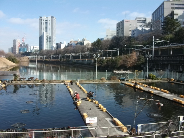 中央線の市ヶ谷駅からよく見えます。 平日の昼間にはよくスーツ姿のサラリーマン風の人が釣り糸を垂らしています。 さぼっているのでしょうか?