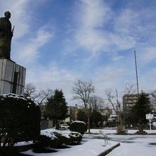 橋本佐内は、幕末、福井藩主、松平春嶽の側近中の側近として活躍した人物。将軍継嗣問題で、一橋慶喜を推す春嶽のために京都などで動いたのですが、いったんは失敗。大老となった井伊直弼の安政の大獄では、春嶽が隠居謹慎、左内は小塚原刑場で斬首となりました。公園内には左内の大きな銅像もあります。