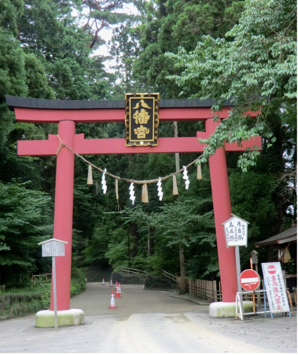 表参道から入る道には大きな鳥居、長い階石段もあり