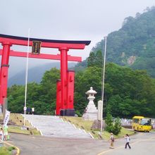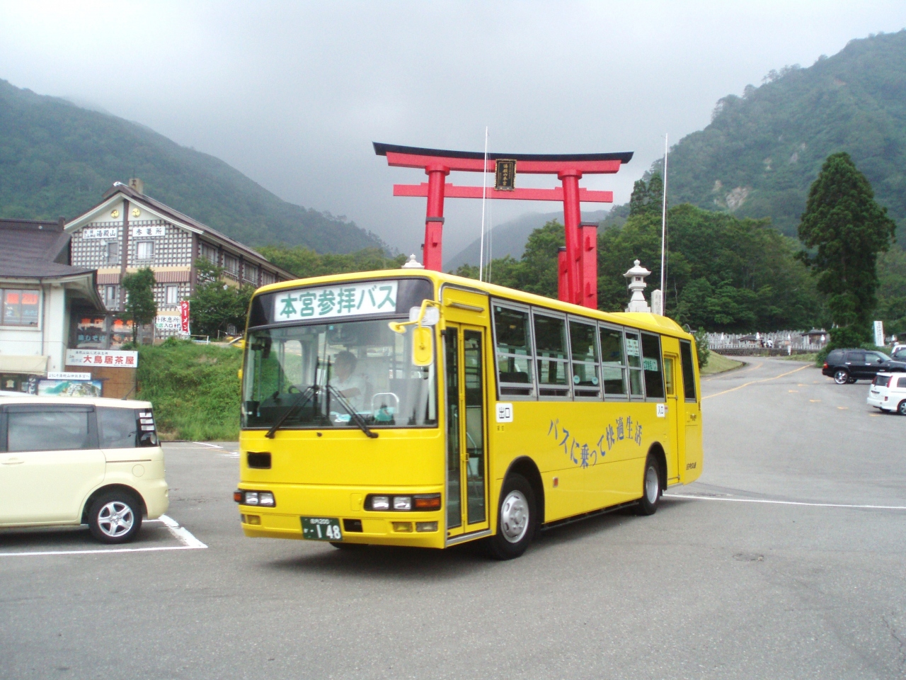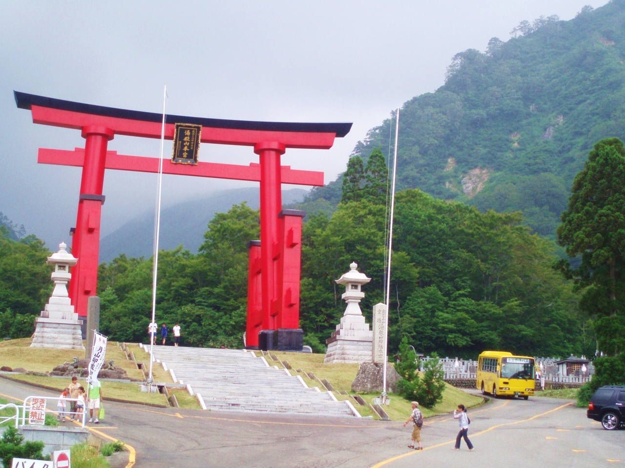 湯殿山まで登るとそこからは参拝バスに乗り上まであがりました。