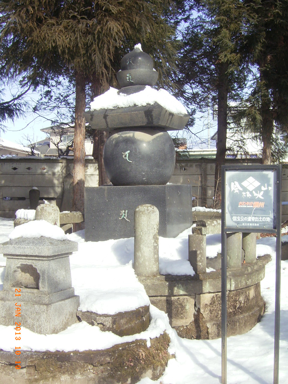 小海線岩田村駅から10分程度です。山門は中山道に向いています。その門からははいれません。わきから入ると本堂が正面にあります。紋章は「武田菱」です。本堂の裏手に武田信玄の遺骨が納められていた塔があります。