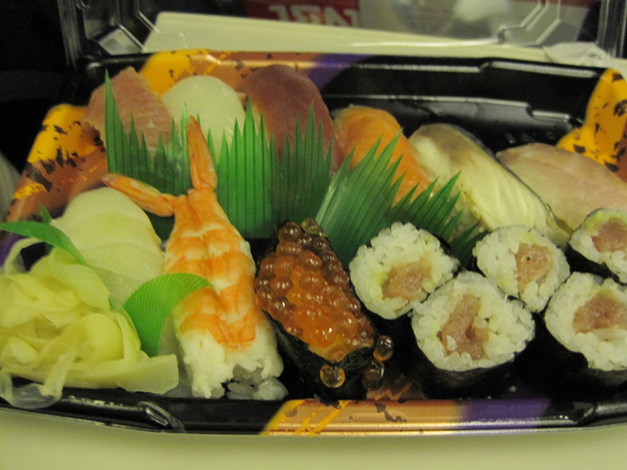 そして、ここでいつもお土産用に握りの詰め合わせを作って貰い、機内に持ち込みます。