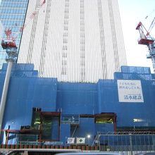 築地市場から築地本願寺、銀座方面へと歩いて行くと右手に工事中でブルーのカバーに覆われた歌舞伎座が見えました。歌舞伎座の後ろには大きなビルが建っていますが、景観を損なっているように見え少し残念な気持ちになりました。