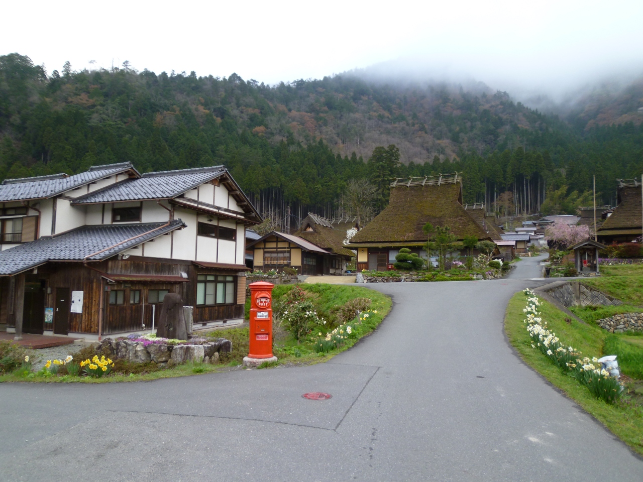 ある雑誌の写真でこの場所を知り、何時か行きたいと思っていました。朝一番に京都市内でレンタカーを借りて約1時間走ると美山町に到着しました。京都とは思えないくらいの奥深い山里ですが、一応の観光地ということで駐車場はありました。私の他には本格的な写真家のような方が一人だけ来ていました。朝霧が山にかかって、少し神秘的な雰囲気でした。村の入口付近にある赤い郵便ポストが印象的でした。古いかやぶき屋根の家々と清流の美山川、ここには忘れられない日本の原風景があります。