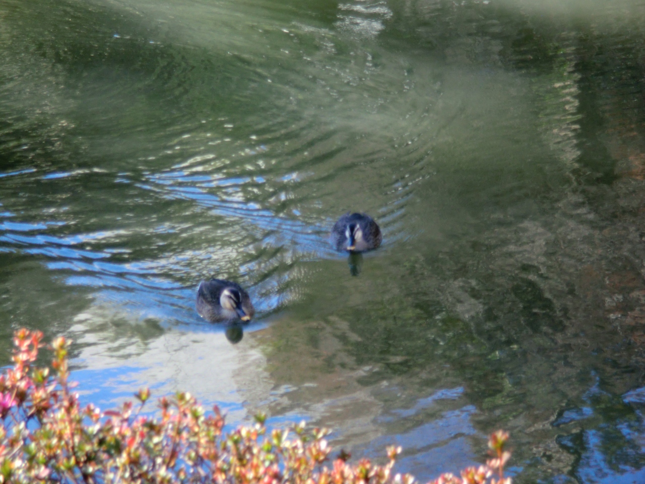 気持ちのいい水辺にかもが泳いぎ、木の上には小鳥が遊んでいました。