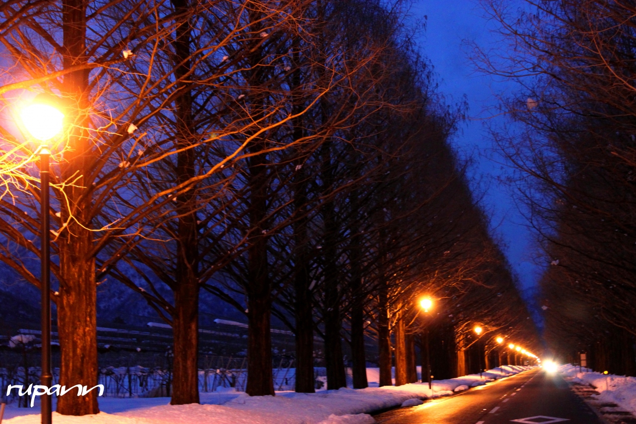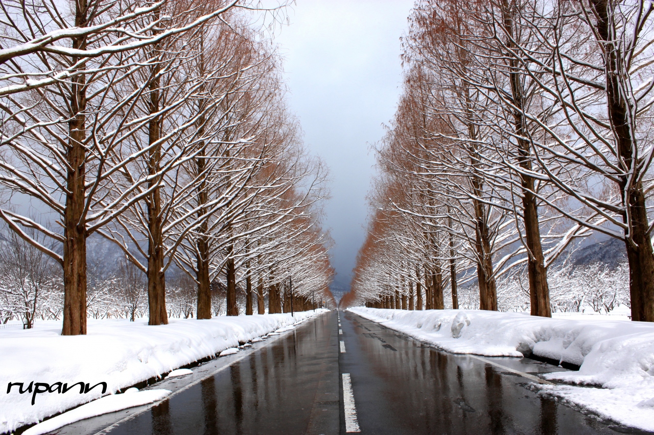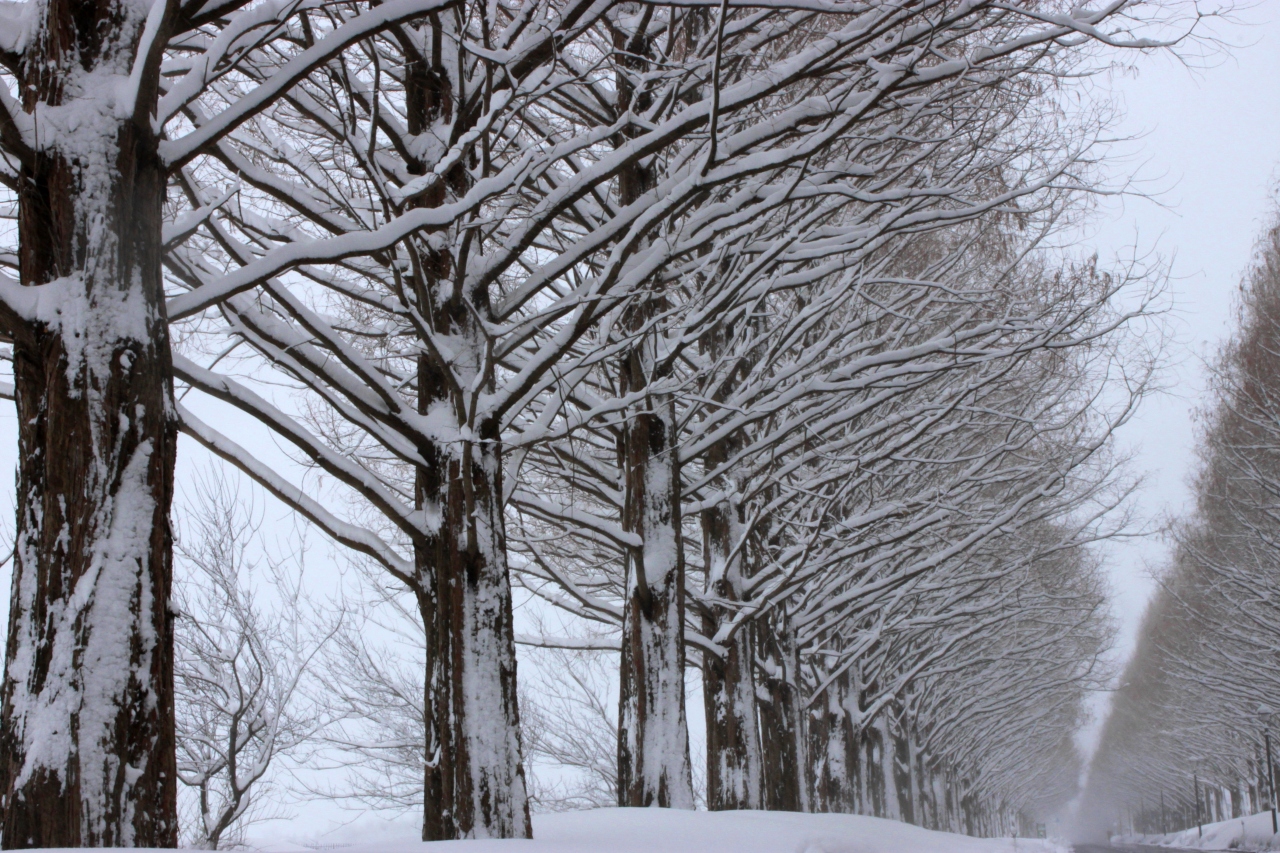 メタセコイヤ並木 雪の華・緑のトンネル