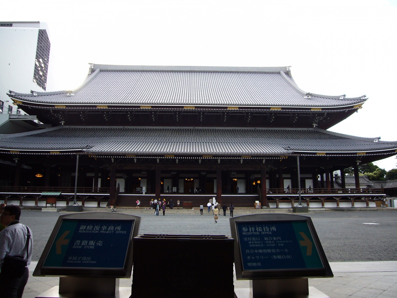 真宗大谷派の本山であり法的には寺院ではなく、「西本願寺」の東に位置するため、「東本願寺」と通称されるのだそうな。昨年は西本願寺しか行けなかったのが残念だったが、ようやく今年拝観できてよかった。最近5年がかりの修復工事を終えた東本願寺、木道建築では世界最大級で、かなり大きい。