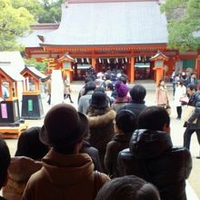 博多の三社参り 子供の頃から欠かさず参拝していたのに、結婚してから行っておらず、3年ぶりに行ってきました。5日に行ったのに、かなりの参拝客にびっくり。30分程並びました。みこさんが鈴を頭の上で降ってくれるお祓いもあり、せっかくなのでしてもらいました。