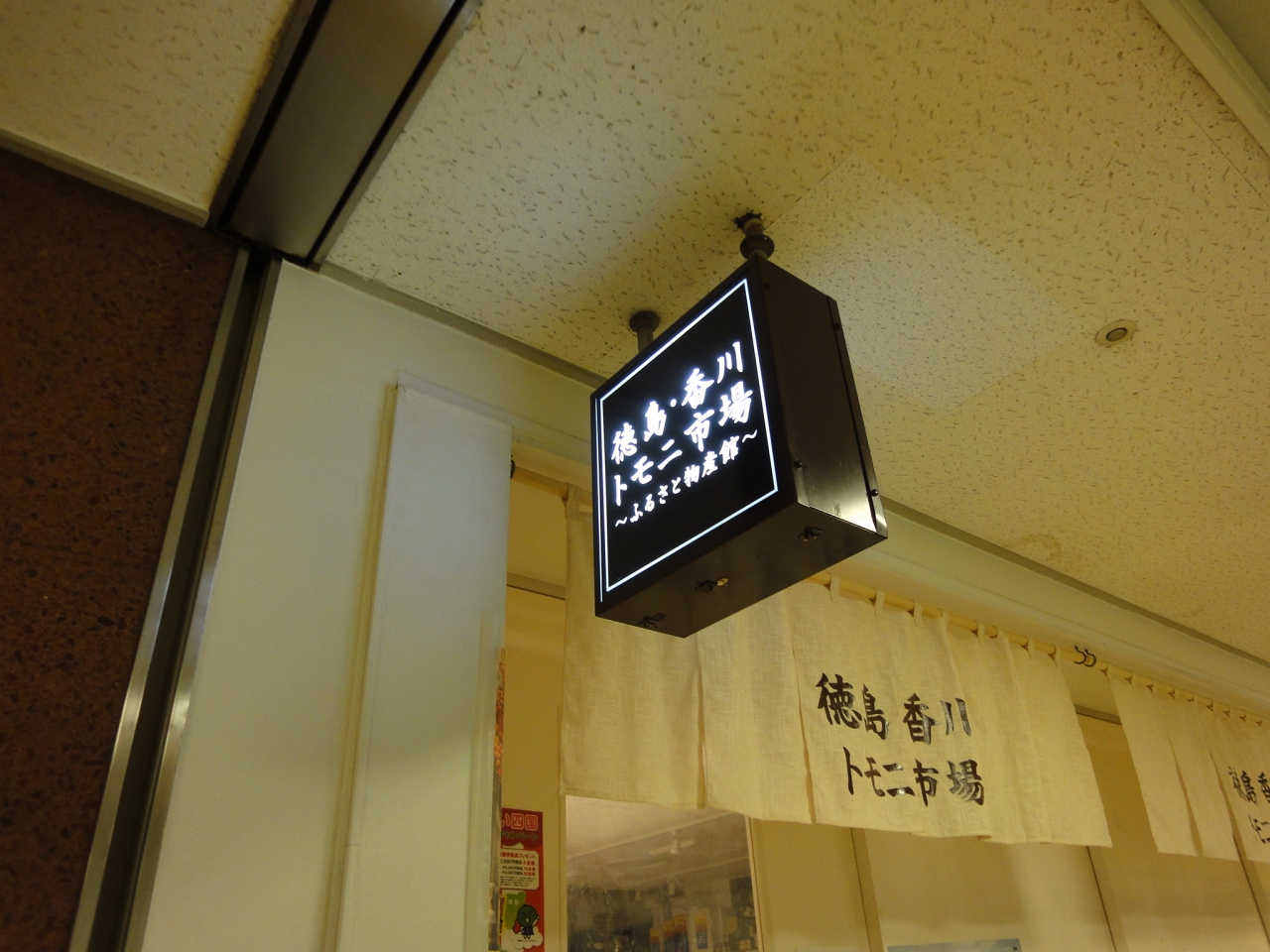 東京交通会館に入っているお店です。いろいろな都道府県のアンテナショップが入っているのですが、徳島・香川はトモニ市場です。おいもや、すだちに、うどん関係など、こういうのが特産品なんだなーと楽しく見られます。おいしそうなものだらけです。