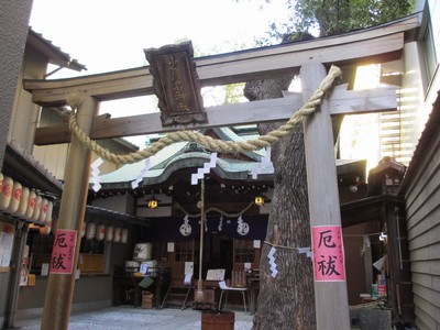 製薬会社や漢方薬局などが多い道修町の中にひっそりとたたずむ神社です。本殿と拝殿は国登録有形文化財に登録されています。少彦名命という日本の薬の神様と、神農さんという中国の薬の神様がお祀りされています。表の看板に張り子の虎の絵が描かれているのですが、由来は江戸時代にコレラが流行した際に、神虎のお守りを作って祈願した後、薬を施与したことにあるそうです。