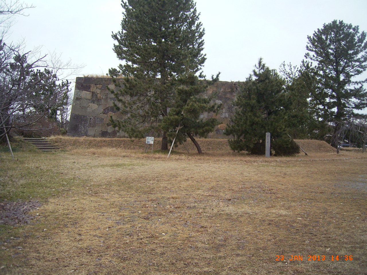 小松城の本丸と二の丸は県立小松高等学校の敷地になっています。三の丸は芦城公園になっています。本丸は小松高校のグランドです。その西隅に天守台が残っています。天守台の四隅の石垣の積み方はすばらしく隙間がありません。きれいな作りです。