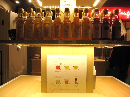 店内奥にハーブティーやビネガードリンクをいただけるスペースがありました。いちじく味といちご味、他にははちみつ梅という美容ドリンクもありました。