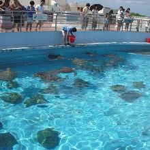 美ら海水族館に併設されているウミガメ館です。ここは入場料が必要なく、無料で見ることが出来ます。上からも下からも覗くことが出来ます。横の水槽にはまだ子供のウミガメ達が頑張って泳いでいました。必死に手をバタつかせて泳ぐ可愛い姿にみとれてしまいました。
