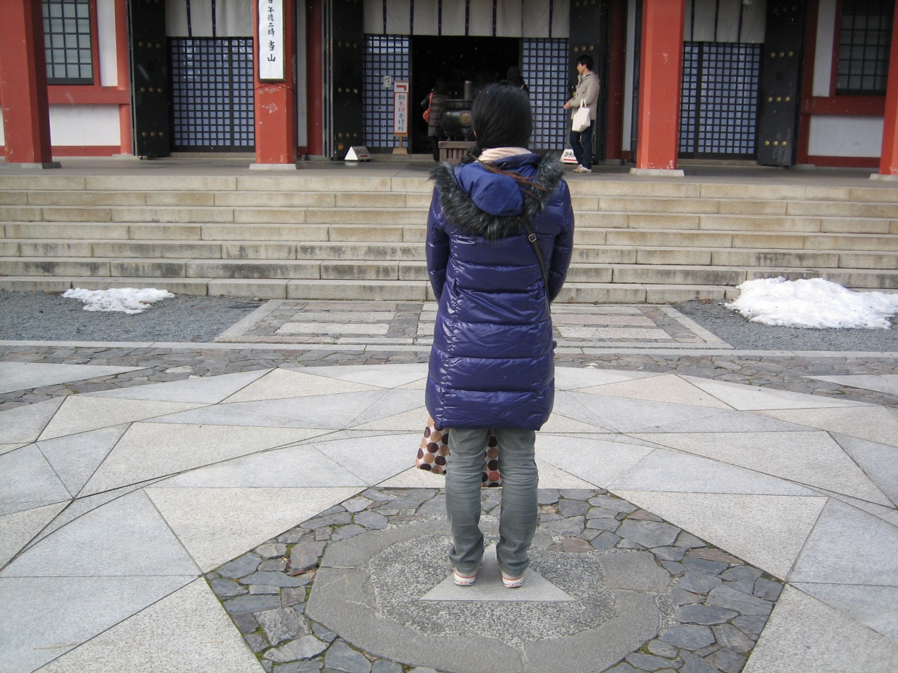 山頂の鞍馬寺につくころには、小雪がちらつき始めていました。