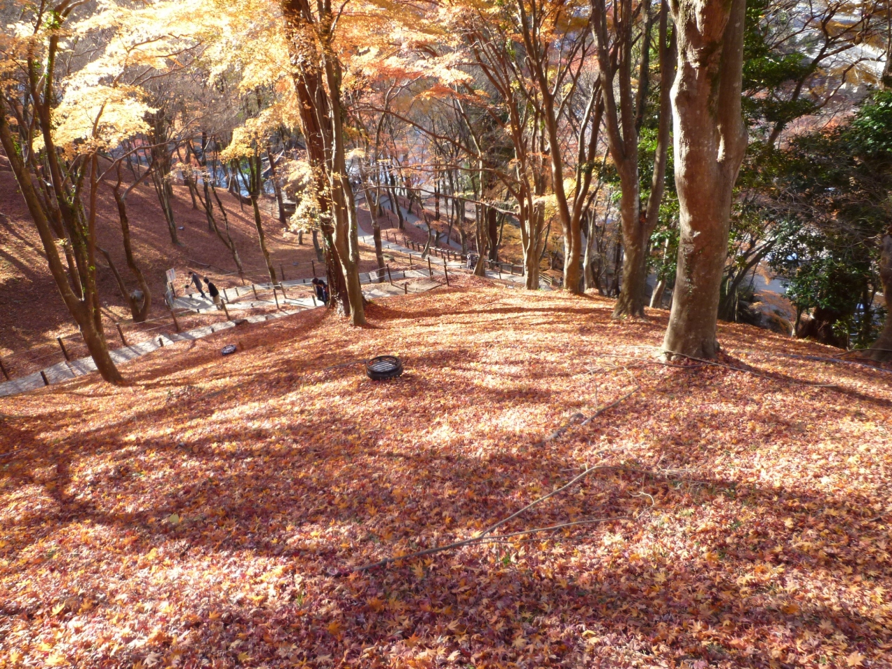 もみじの葉が地面一面に落ちているので、まるで、もみじのじゅうたんのようで、終わりの紅葉もとても素敵なものでした。