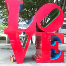 LOVEのオブジェです。中学の美術の教科書に載っていて新宿に行ったら絶対見に行こうと決めていました。地元の人に案内してもらい発見することができました。新宿駅から遠くないのでアートが好きな方は行ってみてください