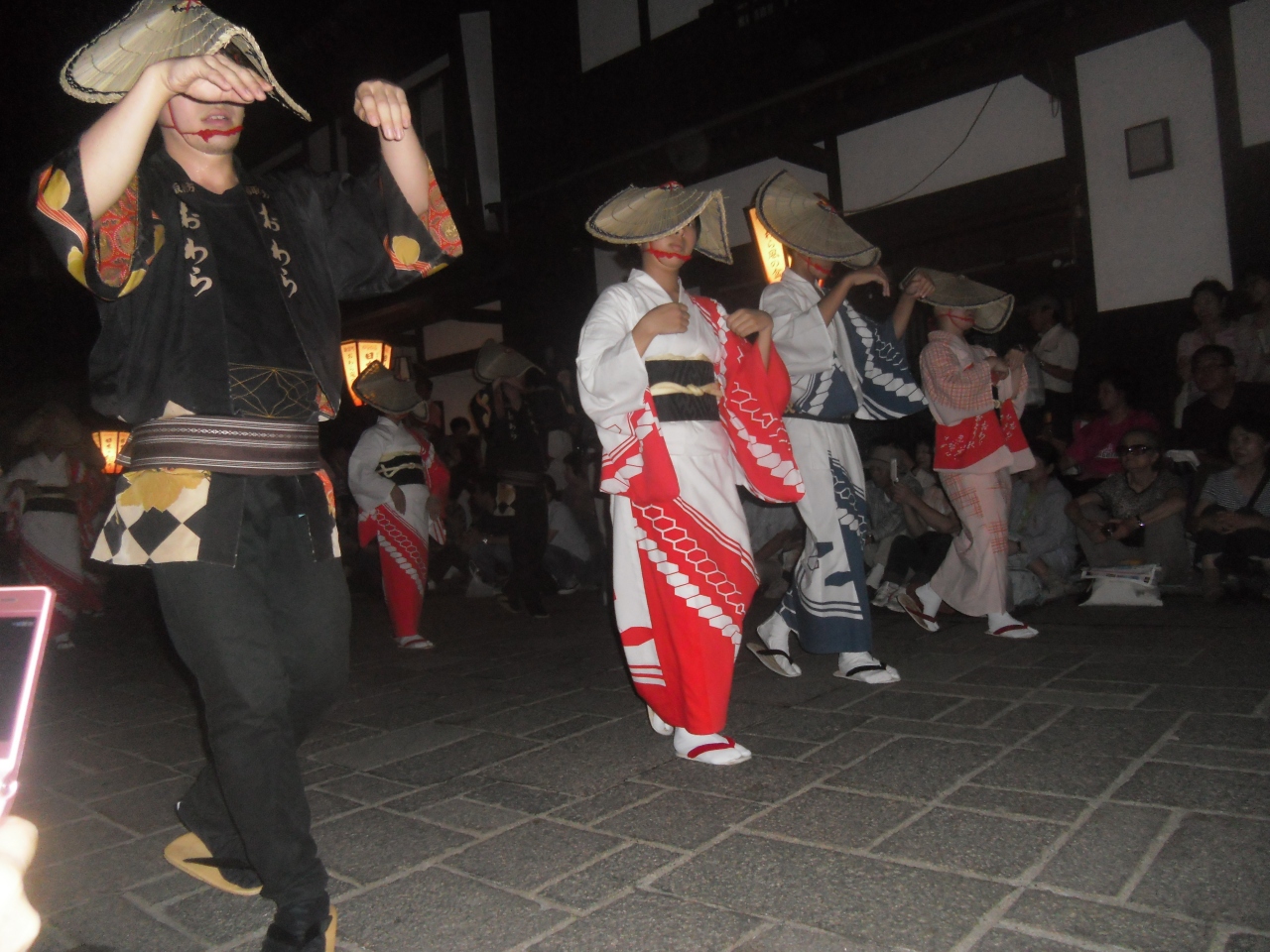 9月のはじめの3日間の"おわら盆踊り”に魅せられて、毎年、足を運びます。胡弓の哀愁に奏でられたお囃子と独特の踊りと、各町内が揃いの踊りゆかたで夜の街を練り歩くさまは、なんともいえない、雰囲気があります。年々、観光客が多くなり、超混雑の中、場所取りも大変です。