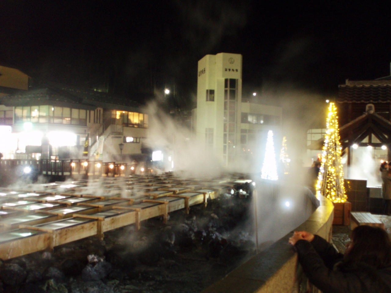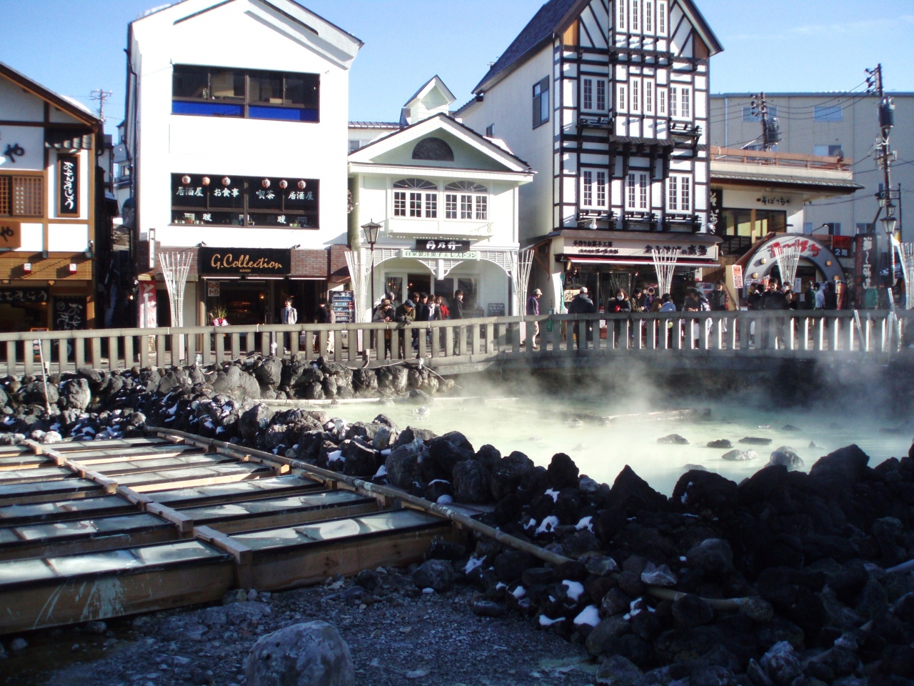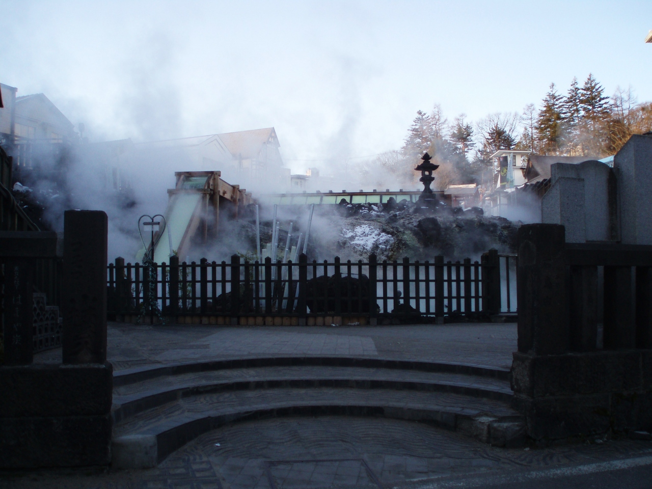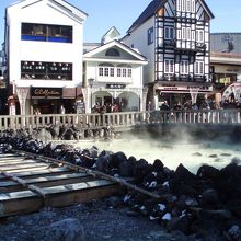 草津の道には下に温泉が通っているようで、特にこの湯畑のあたり